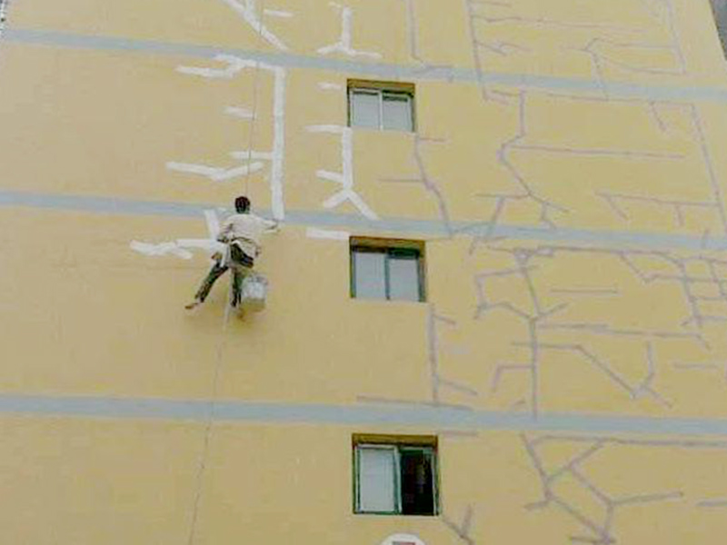 待封閉式面漆徹底干躁后,刷涂二遍外墻涂料。建筑涂料刷涂時嚴(yán)禁過多加水,特別是在是深色調(diào)的建筑涂料加水過多將會造成浮色發(fā)花等安全隱患。